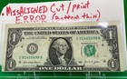 Off-center Mis-print Mis-cut Error Note One Dollar $1 Bill Federal Reserve U.s.