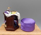 Vintage Ooak Artisan Dressed Crafting Table & Stool Dollhouse Miniature 1:12