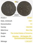 1801 100/000 Rim Clip Draped Bust Large Cent Pcgs Vg Details (env Damage)