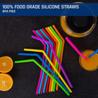50 Pack Bent Reusable Straws, Bpa-free, 9" Colorful Hard Plastic Stripe Drink...