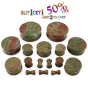 Pair 8g-1" Unakite Stone Plugs Double Flare Gauges Organic Ear Green Pink 2015