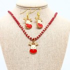 🎄 Red Reindeer Necklace & Earring Set – Christmas Holiday Jewelry Gift