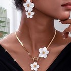 Women's Elegant Alloy White Flower Pendant Necklace Earring Set Fashion Jewelry