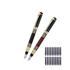 Luxury Metal Fountain Pen 0.5mm Fine Point With 10 Black Ink Cartridges