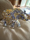 What A Beautiful And Colorful Resin Elephant Statue Figurine In Blue And Gold