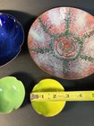 4 Enamel On Copper Bowls All Different Sizes And Colors - Couple Chips