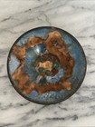 Mid Century Modern Enamel On Copper Footed Plate Bowl Floral Abstract 6” Studio