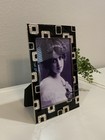 Vtg Metal Enamel Black Silver Geometric Circle Jewel Photo Picture Frame 4” X 6”