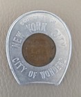 Souvenir Of New York City Good Luck Penny Encased Coin 1946 Wheat Cent Horseshoe