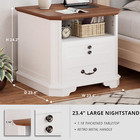 18" Farmhouse Night Stand With Charging Station, 2 Drawers End Table Dresser