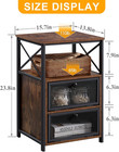 Nightstand With Charging Station, End Table With Fabric Drawer, Night Stand F...