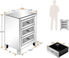 3 Drawer Glass Side End Table Silver Dresser For Bedroom Glass Mirror Night