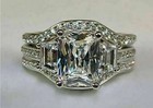 3ct Radiant Cut Lab Created Diamond Engagement Trio Ring Set 14k White Gold Over