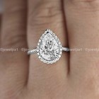 3 Carat Pear Cut Moissanite Halo Engagement Ring Solid 14k White Gold Gift Women