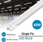 8ft T8 Led Tube Lights 45w 6000k Super Bright Frosted High Output Fa8 Single Pin