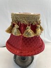 Red Fabric Print Clip On Lamp Shade With Gold Bullion Fringe Tassels 4" Tall