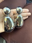 Big Silver Earrings Long Vintage Style Metal Chunky Statement Big Runway Large
