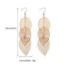 Golden Retro Boho Grid Hollowed Triple Long Leaf Fashion Women's Drop Earrings