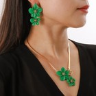 Women's Fashion Elegant Green Flower Pendant Necklace Earring Set Gift Alloy