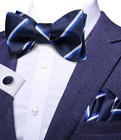 Mens Bowtie Selftied Navy Blue Bow Tie Set Wedding Event Hankie Cufflinks