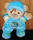 Fisher Price Brilliant Basics 2008 Baby Bear Blue Rattle Plush Toy 10"