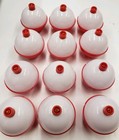 12- Fishing Bobbers 1-3/4" Round Floats Red White Plastic Snap On Float Bobber