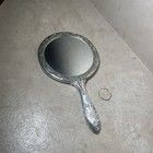 Antique Vintage Victorian Floral Silver Vanity Hand Held Mirror Heavy