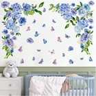Blue Flower Butterfly Wall Stickers, Daisy Peony Violets Floral Art Wall