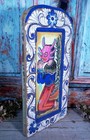 Vintage Collectible Mexican Folk Art Wood And Tile Serving Tray Wall Art Whimsy
