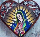 Virgin Of Guadalupe Hand Painted Heart Wood Milagros Handmade Mexico Folk Art Sm