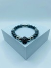 Las Vegas Raiders Men's Bracelet With Hematite Gemstone Beads & Football Helmet