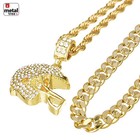 Hip Hop Gold Pt Football Helmet Pendant & 24" Iced Tennis Chain Fashion Necklace