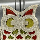 Cast Iron Owl Footed Trivet Stained Hot Plate Glass Look Hoot Animal 5” Vintage