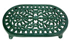 Vintage Cast Iron Oval Footed Trivet Hot Plate Stand Green 6x10" Country Cottage