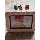 Nat & Jules Zutano 4x6 Baby Picture Frame Pink Stripes Bouncing Owls Ceramic