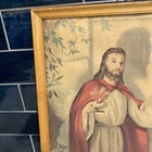 Vintage Sacred Heart Jesus Lithography Print Framed 20.5" X 17.5" Religious Art
