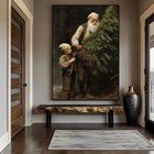 Vintage Christmas Canvas Wall Art Jesus & Santa Claus W/ Christmas Tree Holiday