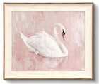 Framed Canvas Wall Art Swan Decor, Vintage Wall Art 12l" X 10w" Pink Swan