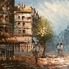 Small Vintage Oil Painting On Canvas Of A Parisian Street Scene 7” X 9” Unframed