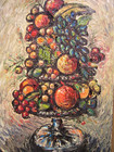 Vintage Mcm Impasto Still Life Oil Painting Fruit Signed