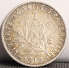 1919 France 1 Francs Silver Coin 469
