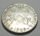1909 France .835 Silver 2 Francs Antique Coin .2685 Asw 1m-better Date 10 Grams