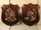 French Antique Pair Hand Carved Wood Breton Couple Wall Panels -ships Ddp To Usa