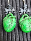 Green Heart Black Skull Pierced Hook Earrings Dangle Punk Gothic Funky Fashion