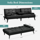 Futon Sofa Bed Convertible Folding Faux Leather Couch Sleeper 2 Cup Holders