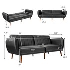 Convertible Futon Sofa Bed Pu Adjustable Couch Sleeper W/wood Legs Black