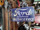 Porcelain Ford Flange Sign 18x10 Inches Over Steel Service Station 2 Sided Rusty