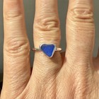 Blue Heart Genuine Caribbean Sea Glass Sterling Silver Ring Size 7