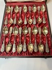 Boxed Set 18 Coffee Spoons. German 800/1000 Silver. Gold Wash. E. Deppe Berlin