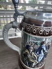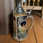 Vintage German Beer Stein Ceramic Relief Pewter Lid 11" Made In Germany Barware